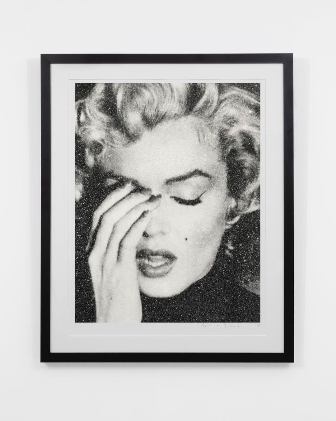 "Marilyn Crying on paper, Moon White" by Russell Young